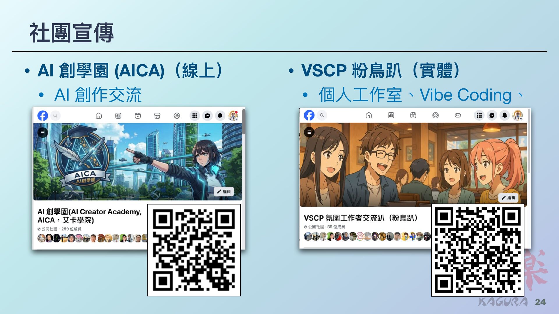 AI 學習 社團宣傳 • AI 創學園 (AICA)(線上) • AI 創作交流 24