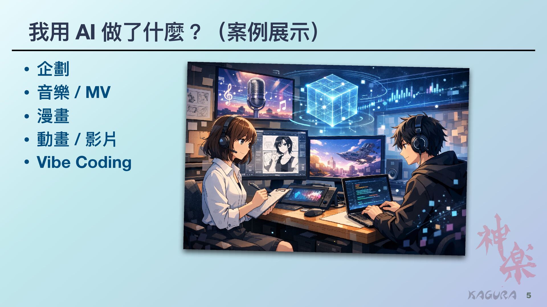 樂 / MV • 漫畫 • 動畫 / 影片 • Vibe Coding 5