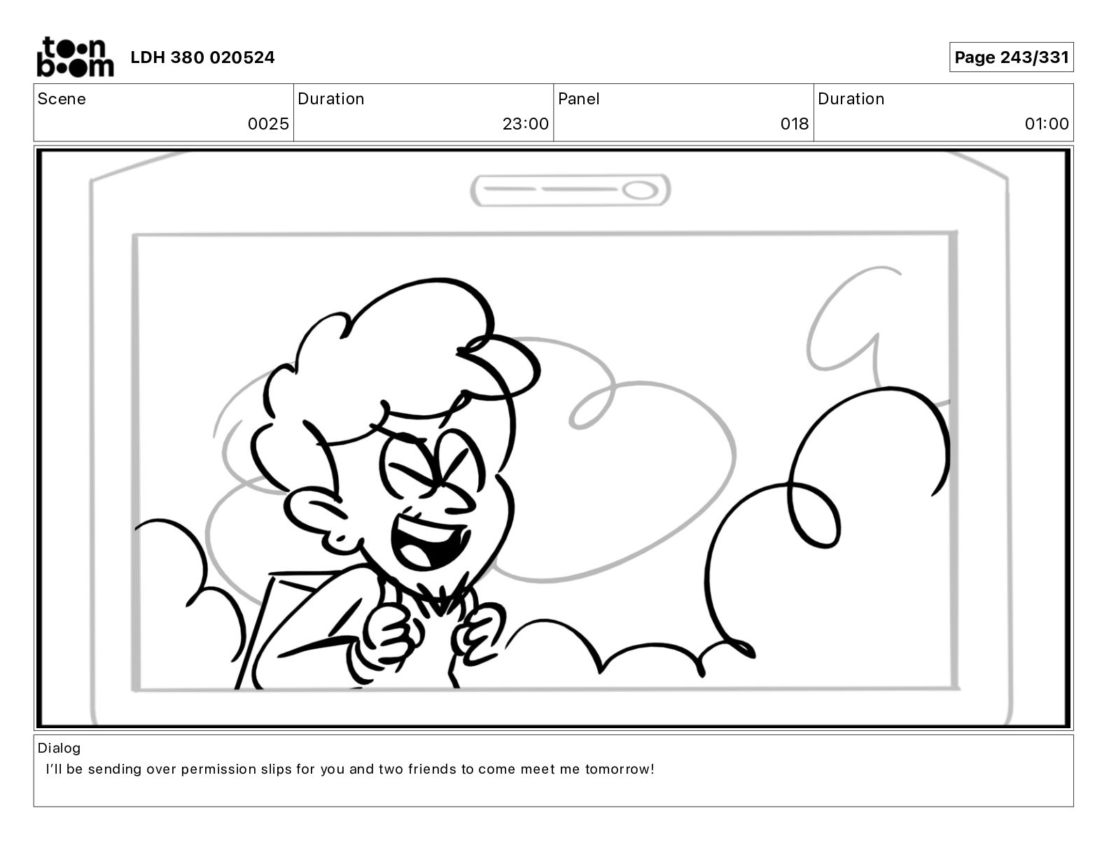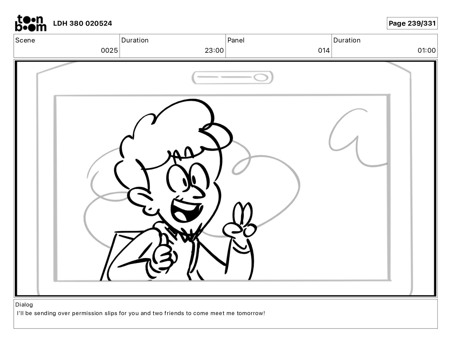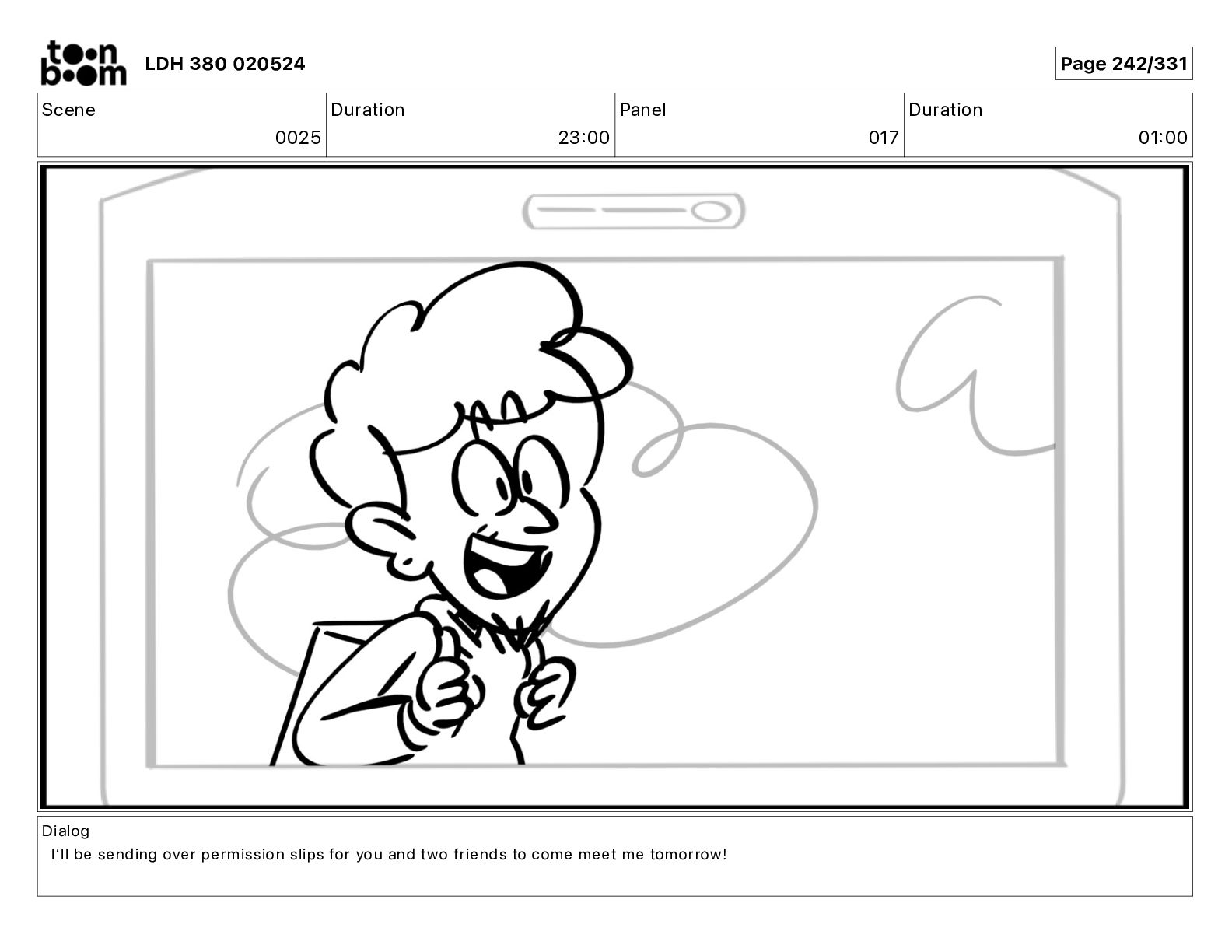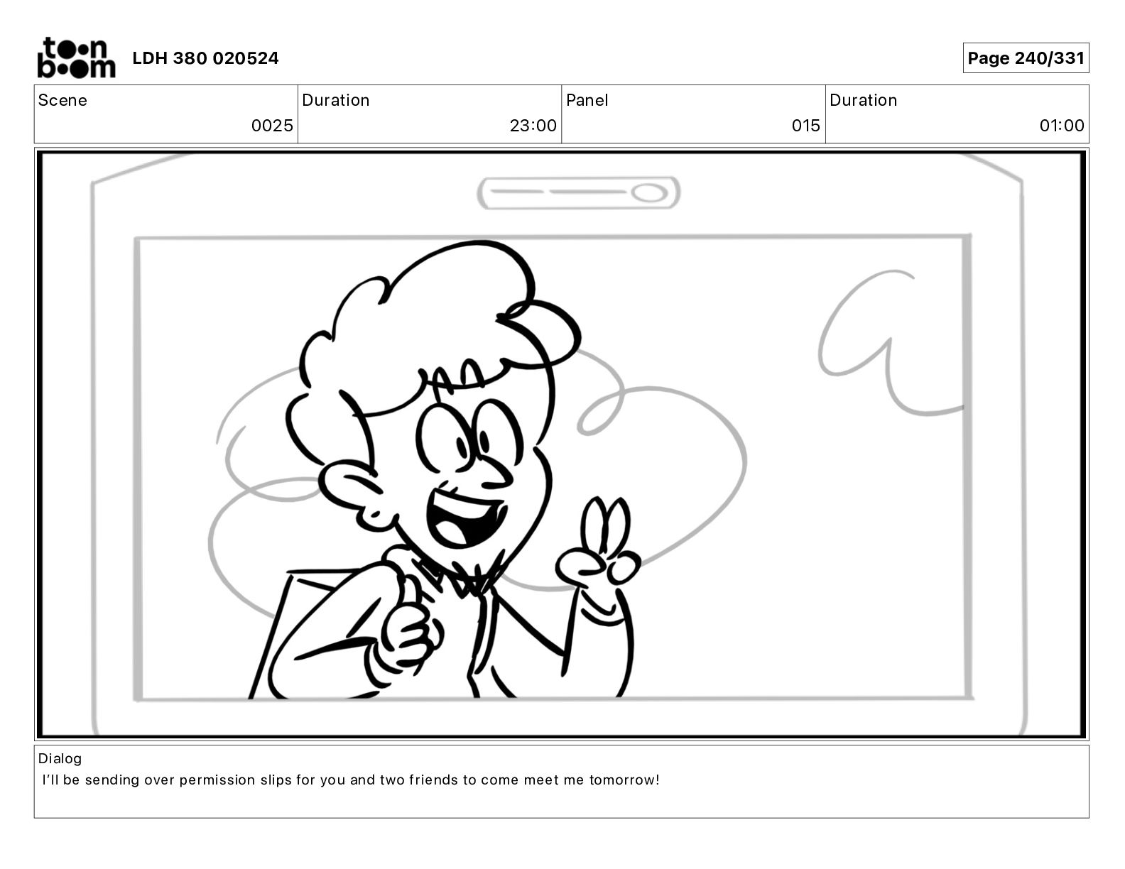 Dialog Iʼll be sending over permission slips for you and two friends to come meet me tomorrow! LDH 380 020524 Page 241/331