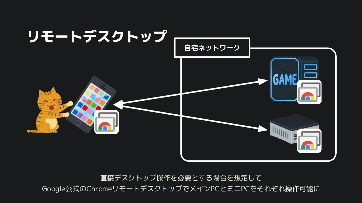 自宅ネットワーク リモートデスクトップ 直接デスクトップ操作を必要とする場合を想定して Google公式のChromeリモートデスクトップでメインPCとミニPCをそれぞれ操作可能に
