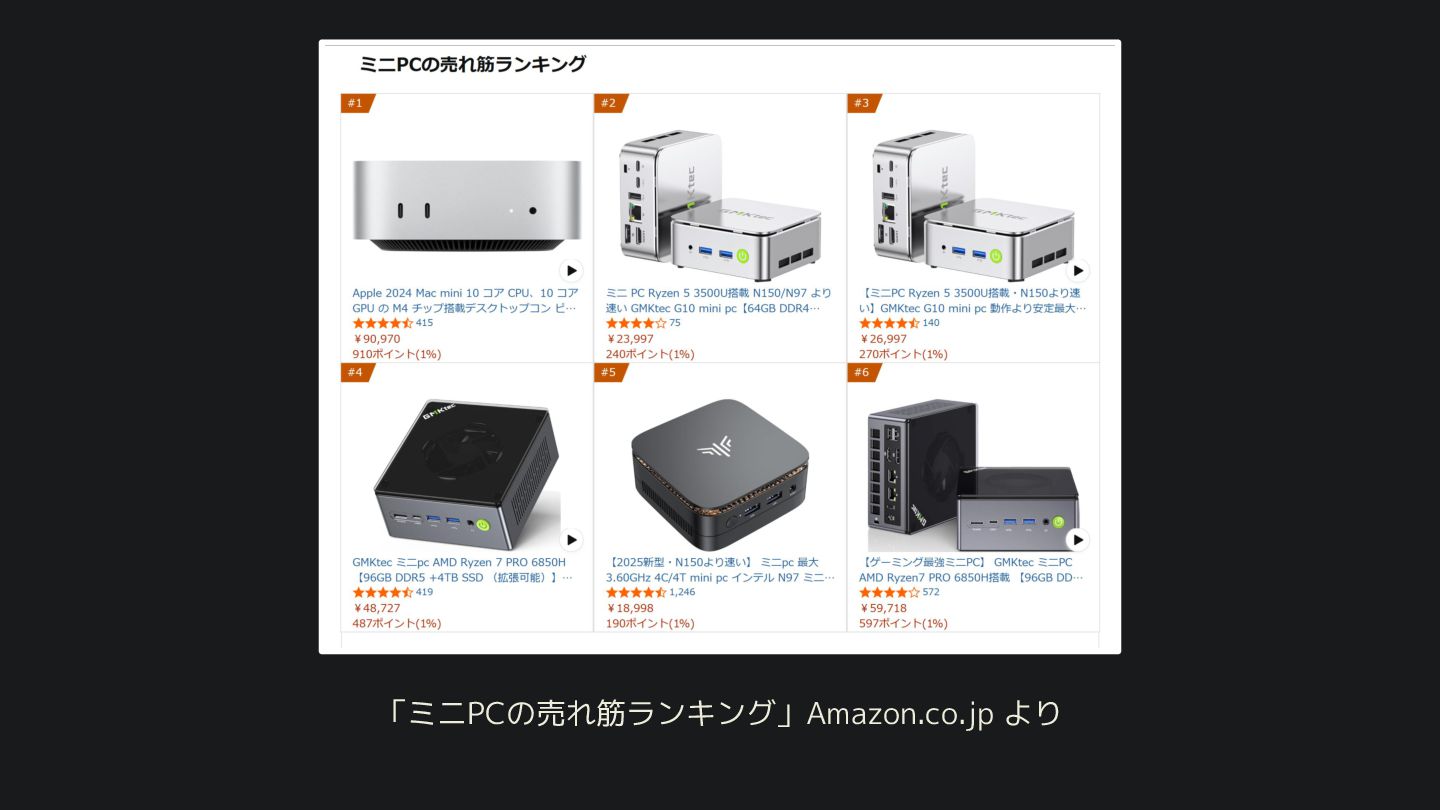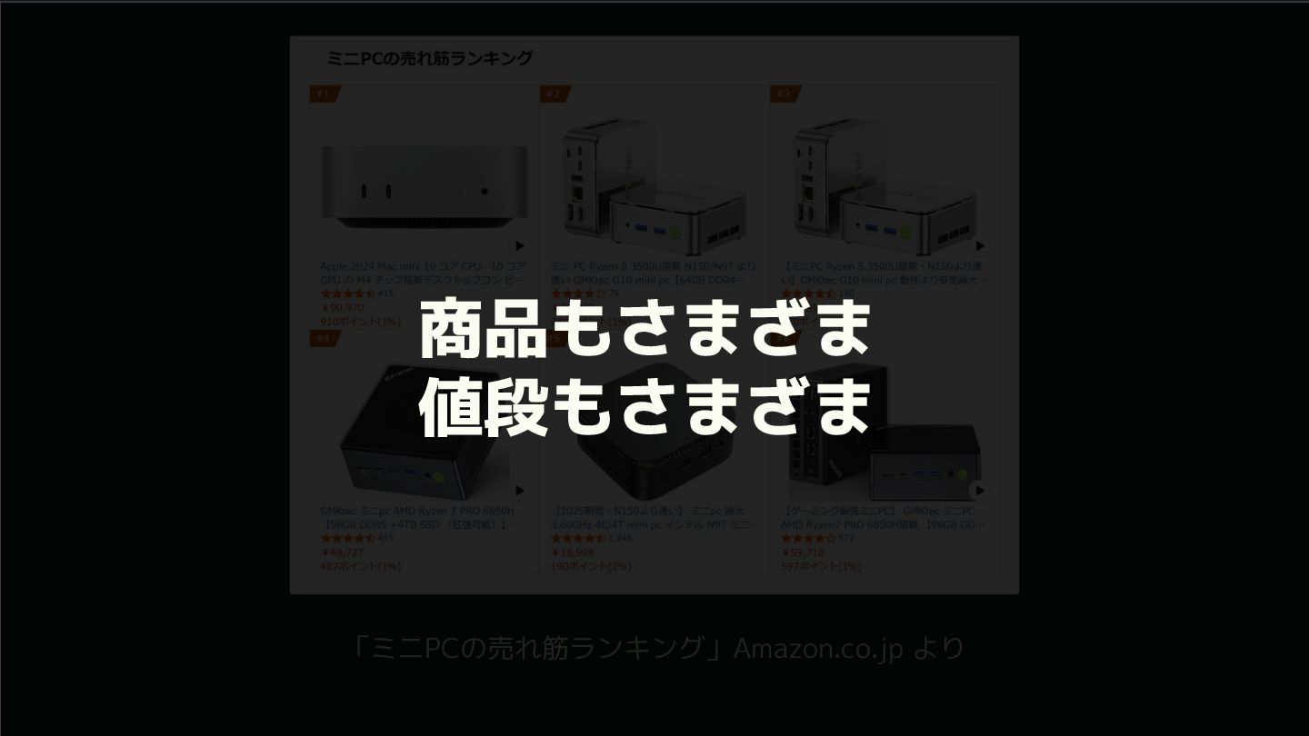 「ミニPCの売れ筋ランキング」Amazon.co.jp より 商品もさまざま 値段もさまざま
