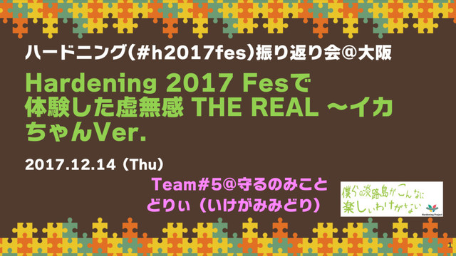 Hardening 2017 Fesで 体験した虚無感 THE REAL 〜イカ ちゃんVer. ハードニング(#h2017fes)振り返り会@大阪 Team#5@守るのみこと