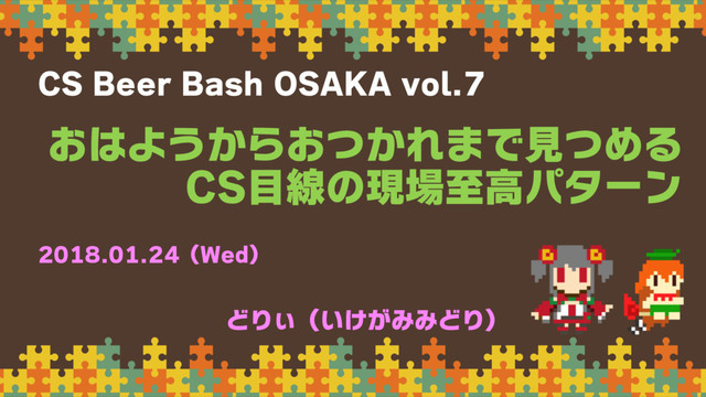 おはようからおつかれまで見つめる CS目線の現場至高パターン CS Beer Bash OSAKA vol.7 どりぃ(いけがみみどり) 2018.01.24(Wed)