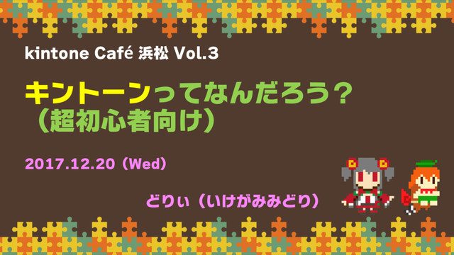 キントーンってなんだろう? (超初心者向け) kintone Café 浜松 Vol.3 どりぃ(いけがみみどり) 2017.12.20(Wed)