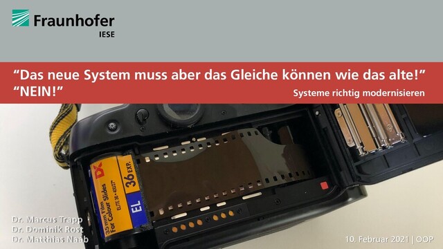 Wenn ein Softwaresystem modernisiert werden soll, kommt oft reflexartig die Anforderung „Das neue System muss aber das Gleiche können wie das alte!” Was sich auf den ersten Blick sinnvoll anhören mag, ist es keineswegs. Warum das so ist, erklären wir vor dem Hintergrund häufiger Modernisierungsziele und typischer Systemhistorien. Damit sollten alle Zuhörenden in Zukunft argumentativ gerüstet sein, diesen Fehler nicht mehr zu begehen. Darüber hinaus zeigen wir Stolperfallen und Best Practices für die Planung einer erfolgreichen Modernisierung.