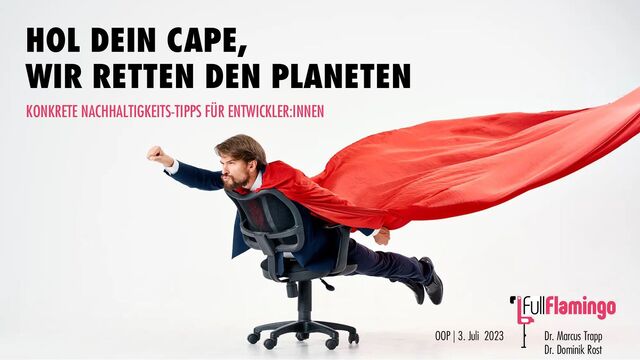 Unserem Planeten geht es nicht gut. Das 1,5-Grad-Ziel ist eigentlich nicht mehr zu halten; 2 Grad, schau mer mal. Und WIR ALLE sind daran beteiligt. Leute, es wird Zeit, wir müssen mehr tun! Aber das Gute ist, als Entwickler:in hat JEDE:R von uns große Hebel, um die Situation zu verbessern. Mit diesem Vortrag trommeln wir für mehr Nachhaltigkeit in der IT und geben zahlreiche, konkrete Tipps, wie WIR ALLE durch nur kleine Änderungen in unserer Arbeit und unserem Verhalten JEDEN TAG unseren Beitrag zur Rettung unseres Planeten leisten können. Join us!