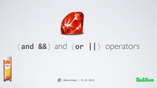 some Boolean operators [...] in which the second argument is only executed or evaluated if the first argument does not suffice to determine the value of the expression.” ”Short-circuit operators are, in effect, control structures rather than simple arithmetic operators” http://en.wikipedia.org/wiki/Short-circuit_evaluation :foo && :bar if :foo :bar end #=> :bar :foo || :bar #=> :foo