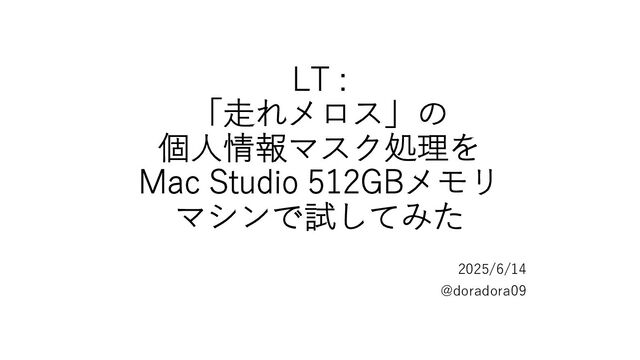 LT : 「⾛れメロス」の 個⼈情報マスク処理を Mac Studio 512GBメモリ マシンで試してみた 2025/6/14 @doradora09