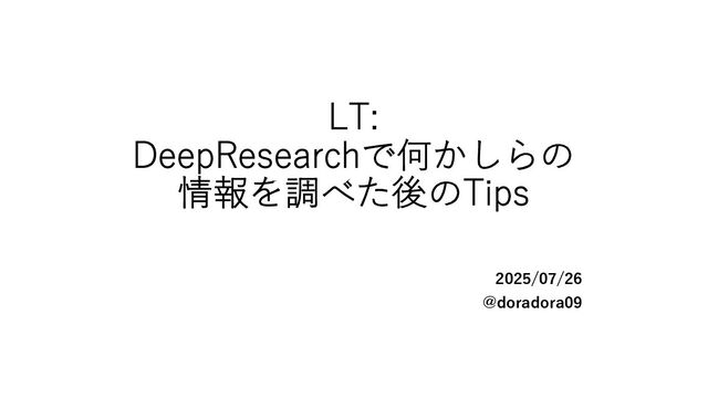 LT: DeepResearchで何かしらの 情報を調べた後のTips 2025/07/26 @doradora09
