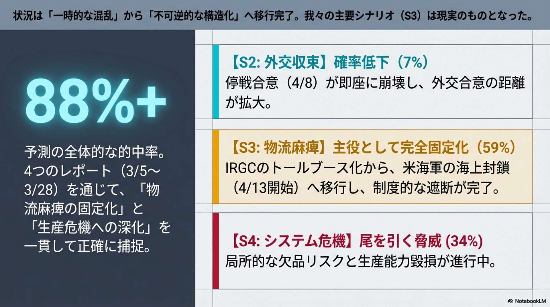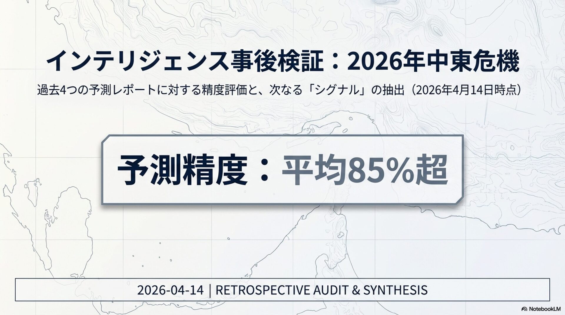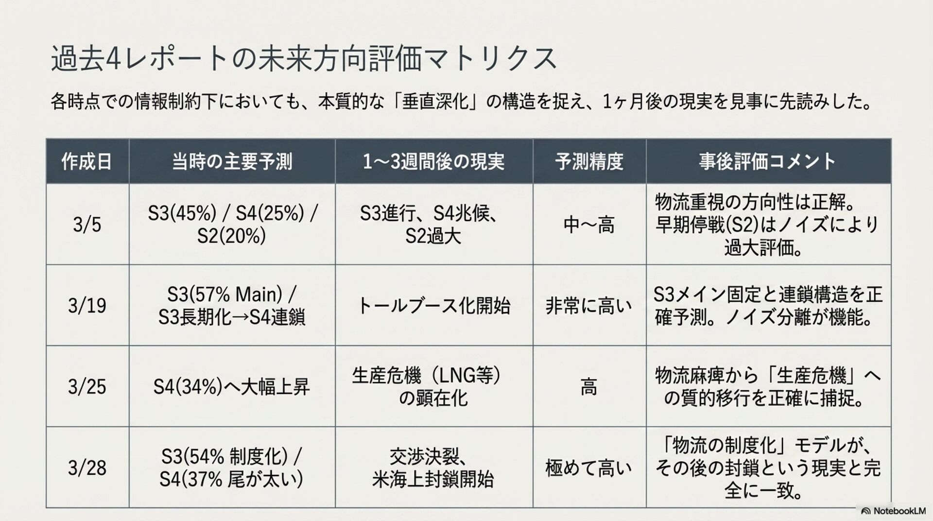 20260414_イラン情勢1ヶ月の4つのレポート事後評価(β版)