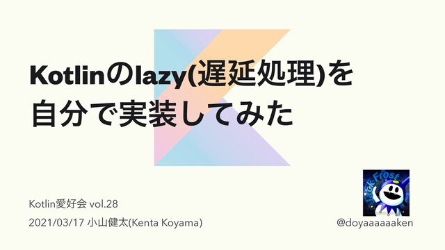 Kotlinͷlazy(Ԇॲཧ)Λ ࣗͰ࣮ͯ͠Έͨ KotlinѪձ vol.28 2021/03/17 খࢁ݈ଠ(Kenta Koyama) @doyaaaaaaken