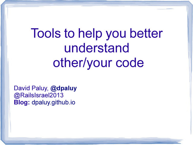 While joining other peoples Ruby on Rails project, you need some tools better understand the code. Remember those 4 topics: 1. Class Diagram 2. Gems 3. Test before the change 4. Take care of your team style