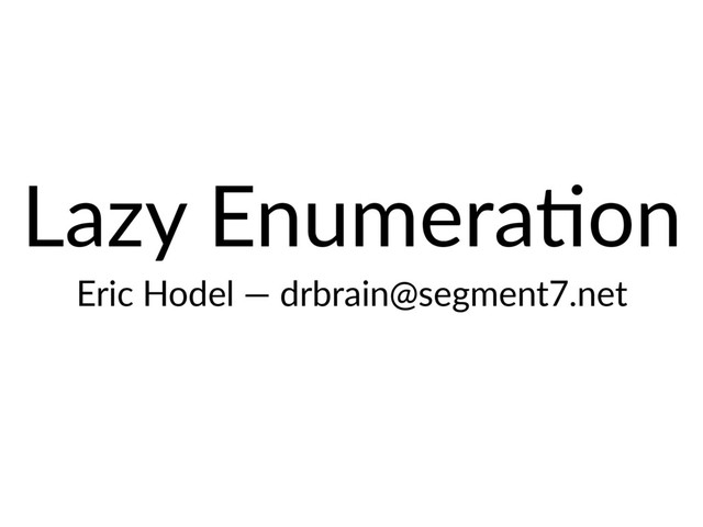 Lazy Enumera,on •Reduces memory used •Great for huge data sets