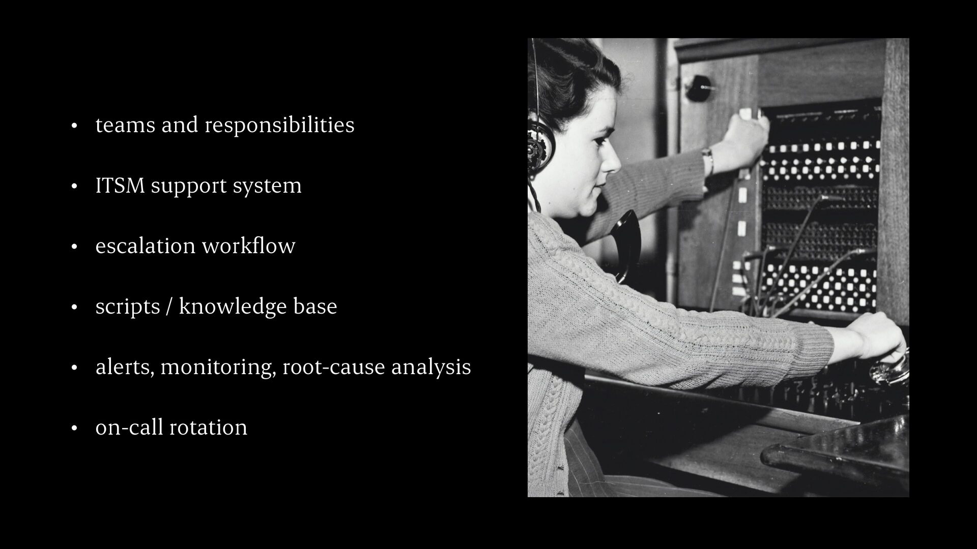work fl ow • scripts / knowledge base • alerts, monitoring, root-cause analysis • on-call rotation