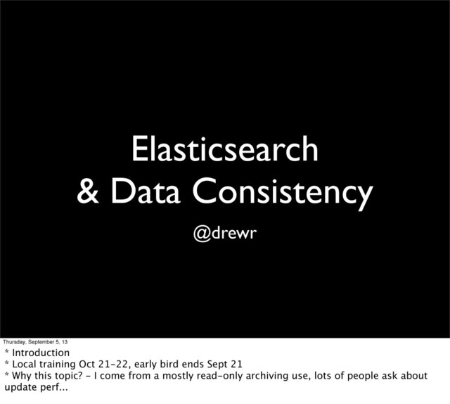 1. Elasticsearch & Data Consistency @drewr Thursday, September 5, 13 *