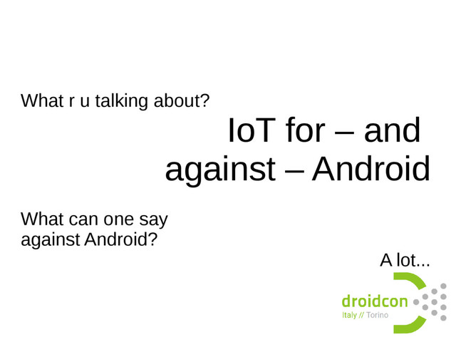 Look forward to a demonstration of obscure and common techniques ranging from the use of the headphone output to Bluetooth LE, the ADK and a large variety of other ways to make real things go beep and boom.