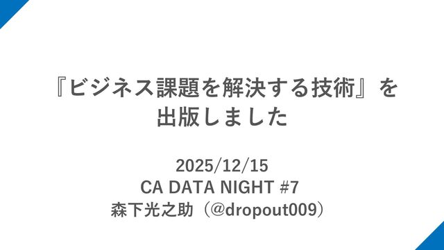 『ビジネス課題を解決する技術』を 出版しました 2025/12/15 CA DATA NIGHT #7 森下光之助(@dropout009)