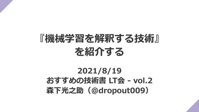 2021年8月に技術評論社さんから出版された『機械学習を解釈する技術』( https://amzn.to/3ssSsIM )を紹介しています。