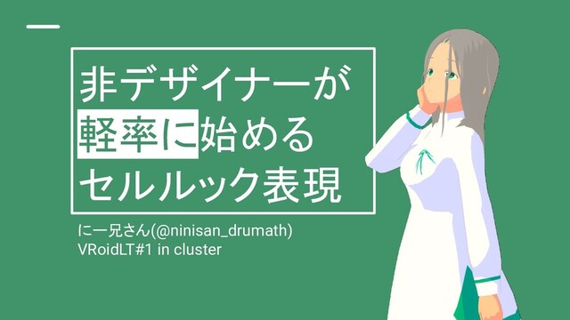 非デザイナーが 軽率に始める セルルック表現 にー兄さん(@ninisan_drumath) VRoidLT#1 in cluster