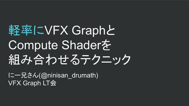 軽率にVFX Graphと Compute Shaderを 組み合わせるテクニック にー兄さん(@ninisan_drumath) VFX Graph LT会