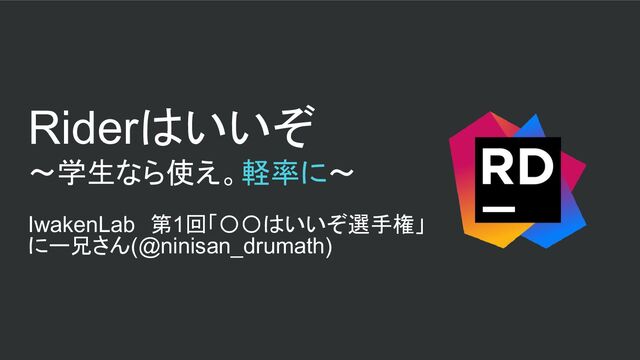 Riderはいいぞ 〜学生なら使え。軽率に~ IwakenLab 第1回「〇〇はいいぞ選手権」 にー兄さん(@ninisan_drumath)