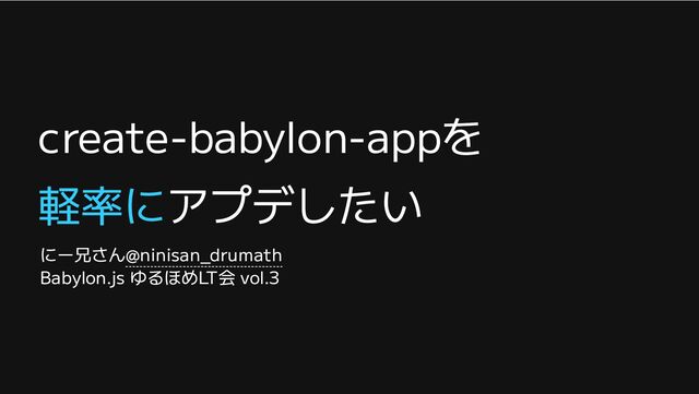 create-babylon-appを 軽率にアプデしたい にー兄さん@ninisan_drumath Babylon.js ゆるほめLT会 vol.3