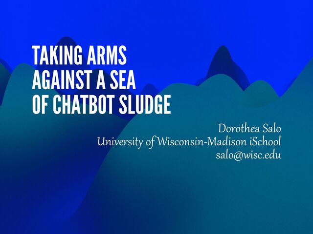 cheating ad networks) •Deepfakes, including sexually-themed ones •Genuinely fake “fake news” •Academic and professional cheating • Including research and scholarly publication f r aud! • At base, the lie is “I thought about and created this.” • No, you didn’t, and yes, it mat t ers. •Yes, the chatbot companies know about this and don’t care. •But it’s also up to us not to use these things just to be liars and grifters and cheats, okay?