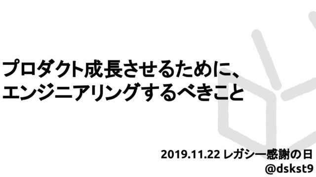 プロダクト成長させるために、 エンジニアリングするべきこと 2019.11.22 レガシー感謝の日 @dskst9