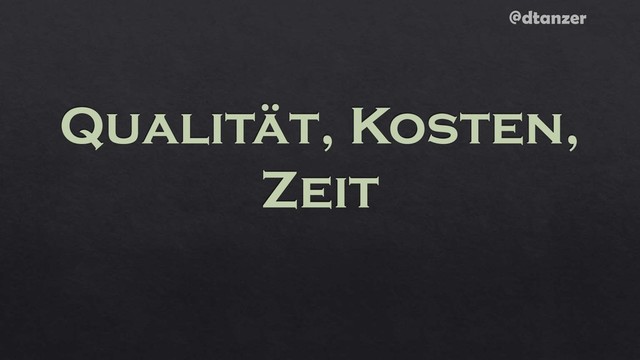 In der Softwareentwicklung hängen Qualität, Kosten und Zeit eng zusammen. Investitionen in Qualität beeinflussen die beiden anderen Faktoren positiv.