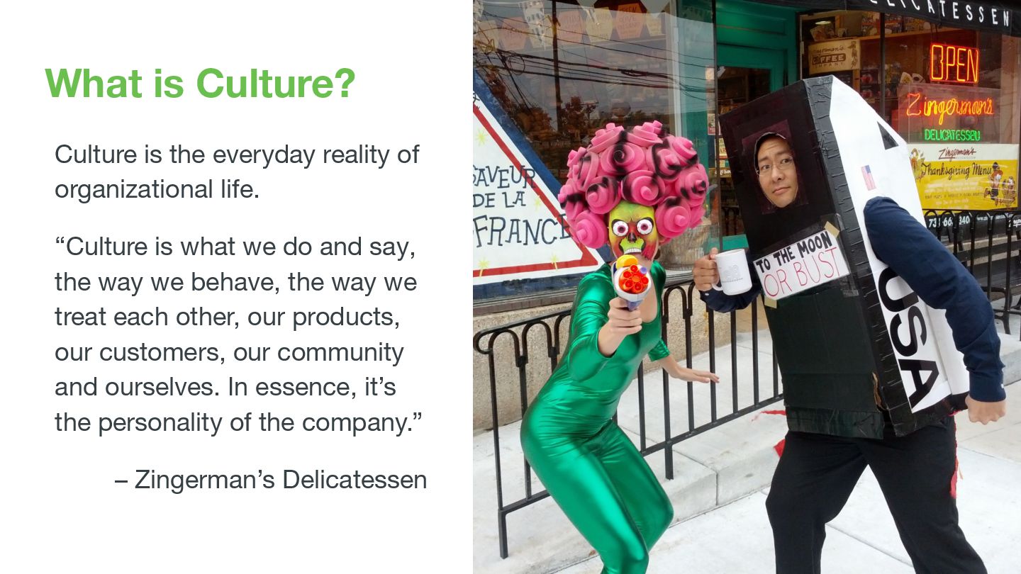 life. “Culture is what we do and say, the way we behave, the way we treat each other, our products, our customers, our community and ourselves. In essence, it’s the personality of the company.” – Zingerman’s Delicatessen