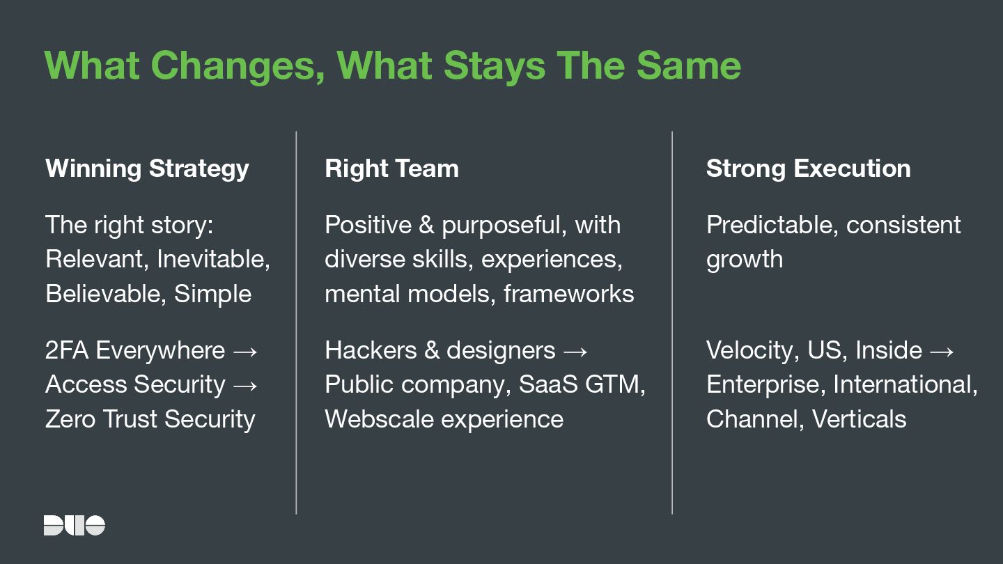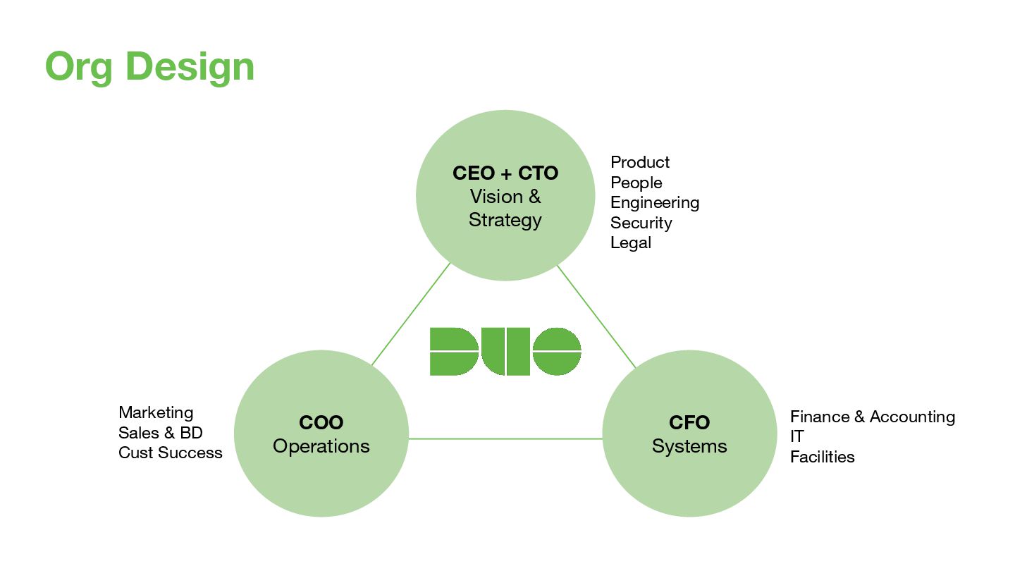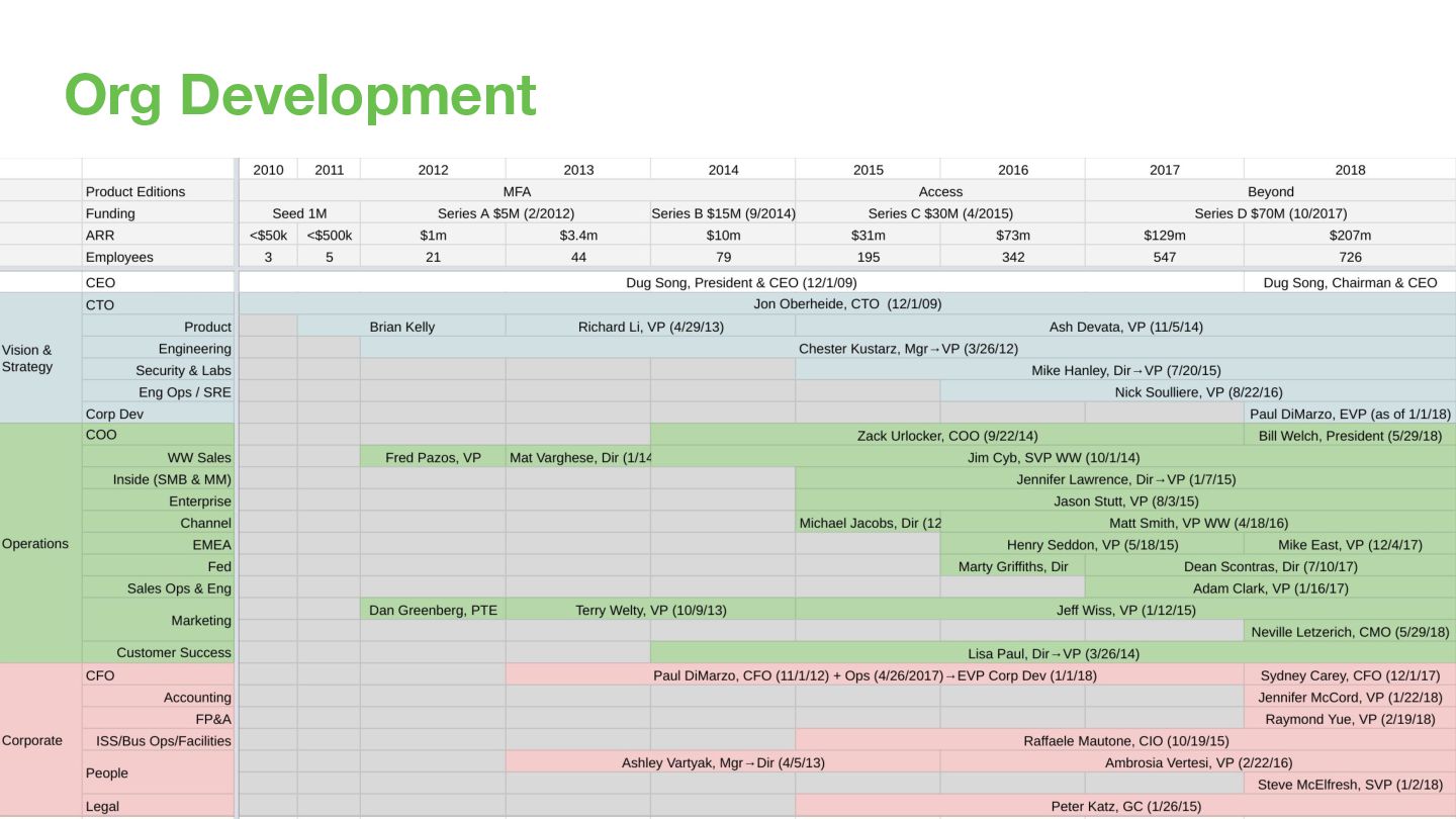 2012 21 HC Culture Deck Duo Lunch Talks & Bios Appreciations & Karma Hack Day Holiday Parties Equitable Benefits 2013 44 HC Strategic Plan / OKRs Board Reports Ask Duo Anything Sales Dashboard Open Houses Interview Training 2014 79 HC Culture Day Duo Gives Duo Pulse Survey 2015 195 HC Duo Kickoff Sales Bootcamp Summer Picnics Duo Tech Talks 2017 547 HC Coffee Roulette 2018 726 HC Culture Zine Duo Circles
