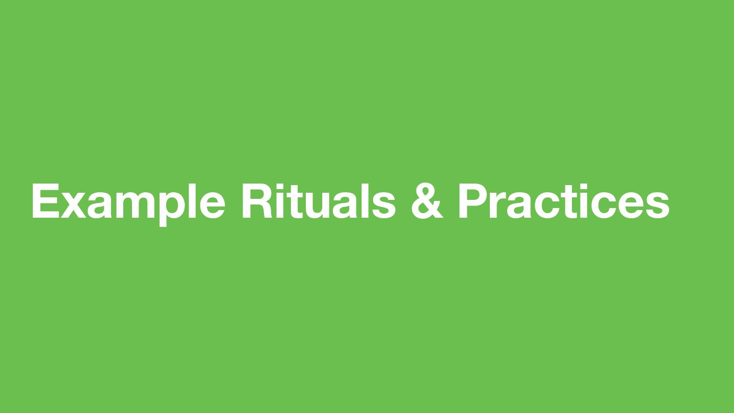Days, Lean/Agile ▸ Learn Together ▸ e.g. Retrospectives, Tech Talks, Book Clubs, Training ▸ Be Kinder Than Necessary ▸ e.g. Appreciations, Feedback, Conflict Resolution