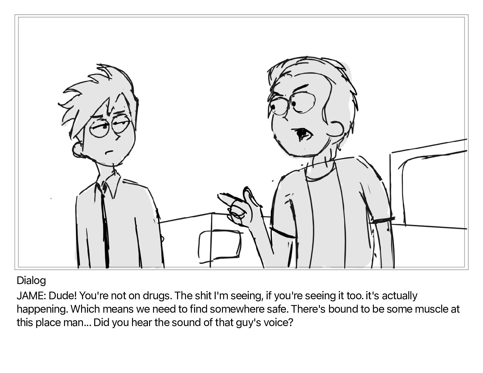 seeing, if you're seeing it too. it's actually happening. Which means we need to find somewhere safe. There's bound to be some muscle at this place man... Did you hear the sound of that guy's voice?