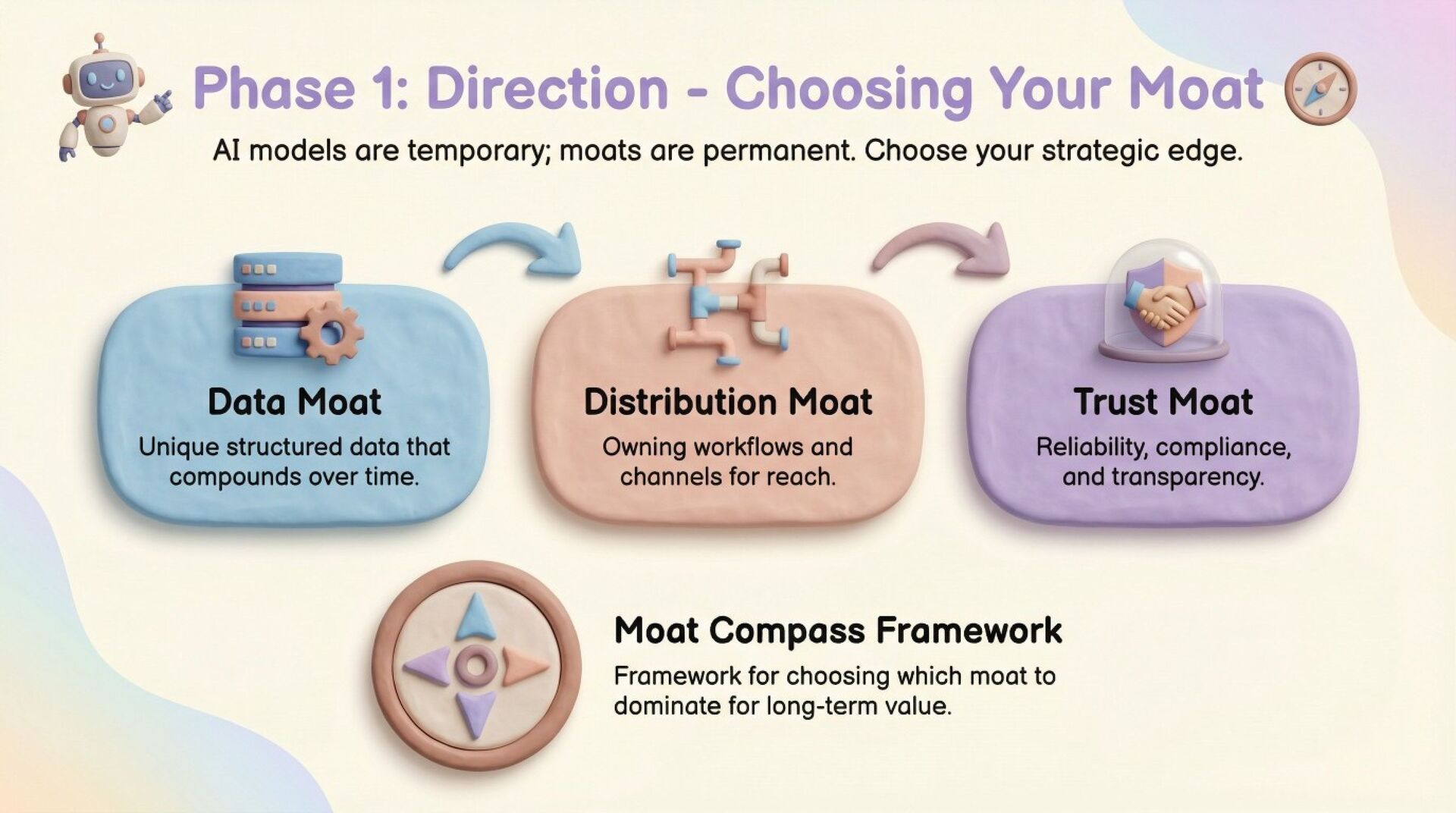 AI is not a feature you ship. It is a new economics, a new philosophy, a new kind of moat. And if you don’t pick your moat before you pick your model, you’re not building a product—you’re leasing a wrapper, waiting for the next GPT-5.x update to render you obsolete.