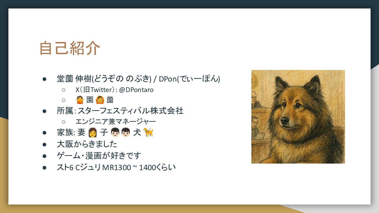 自己紹介 • 堂薗 伸樹(どうぞの のぶき) / DPon(でぃーぽん) ◦ X(旧Twitter): @DPontaro