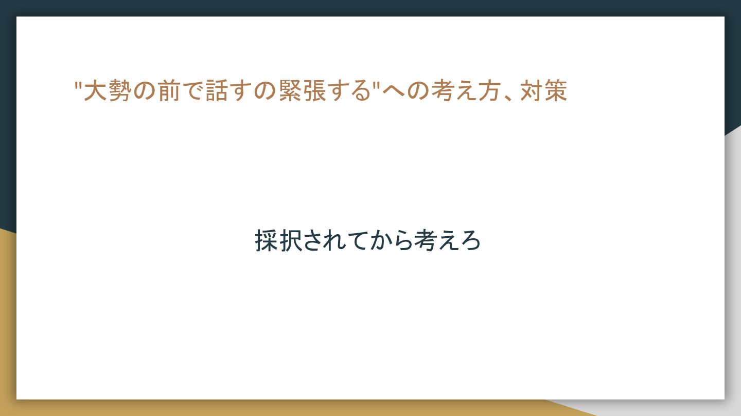 "大勢の前で話すの緊張する"への考え方、対策 採択されてから考えろ