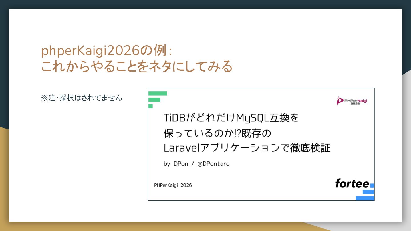 phperKaigi2026の例: これからやることをネタにしてみる ※注:採択はされてません