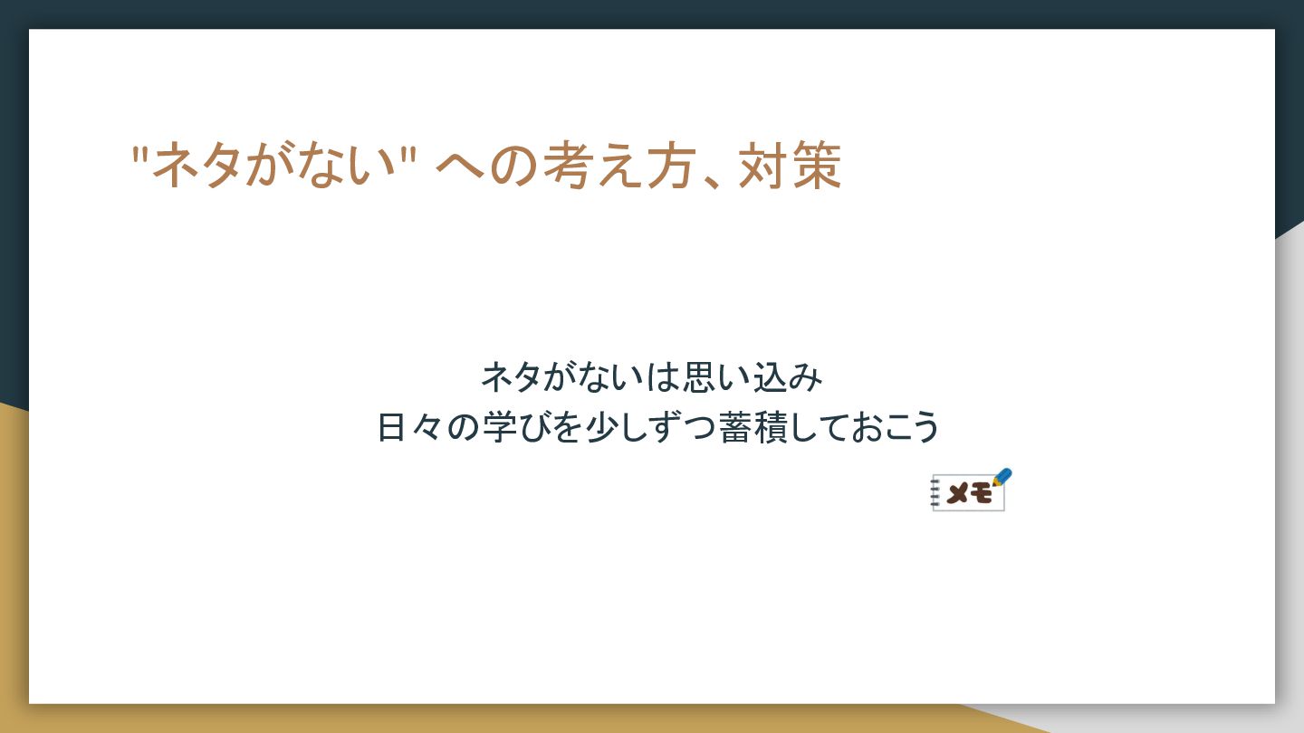 "ネタがない" への考え方、対策 ネタがないは思い込み 日々の学びを少しずつ蓄積しておこう
