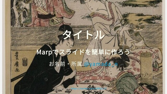 タイトル Marpでスライドを簡単に作ろう お名前・所属 @yamada_n See also See also https://twitter.com/e99h2121 https://twitter.com/e99h2121