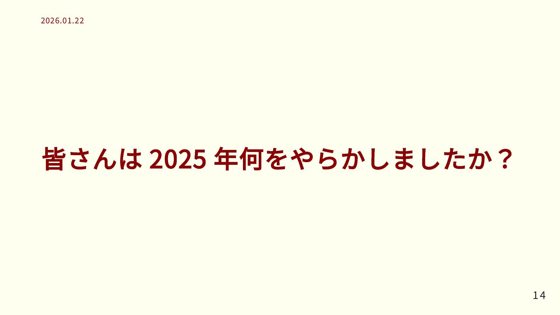 皆さんは 2025 年何をやらかしましたか? 14 14 2026.01.22 2026.01.22