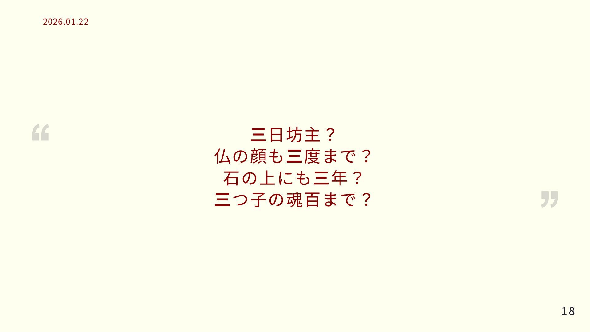 三日坊主? 仏の顔も 三度まで? 石の上にも 三年? 三つ子の魂百まで? 18 18 2026.01.22 2026.01.22