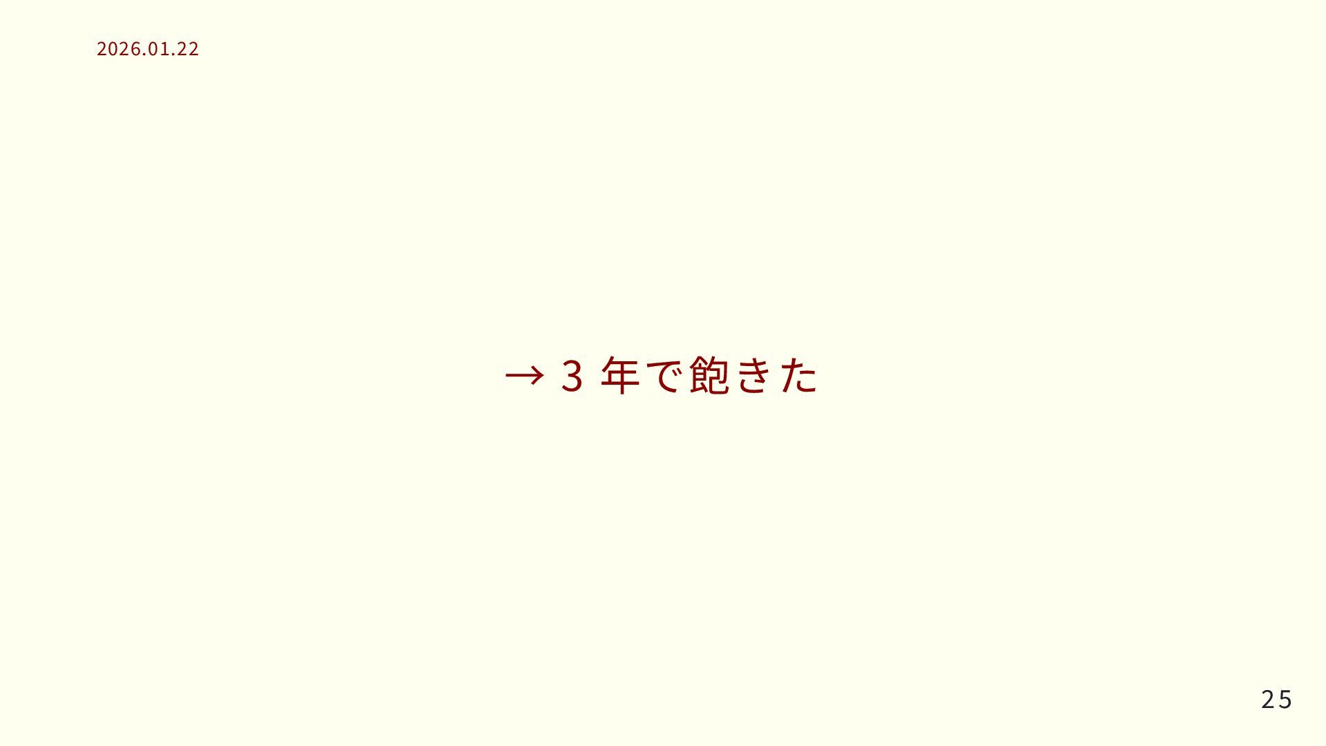 → 3 年で飽きた 25 25 2026.01.22 2026.01.22
