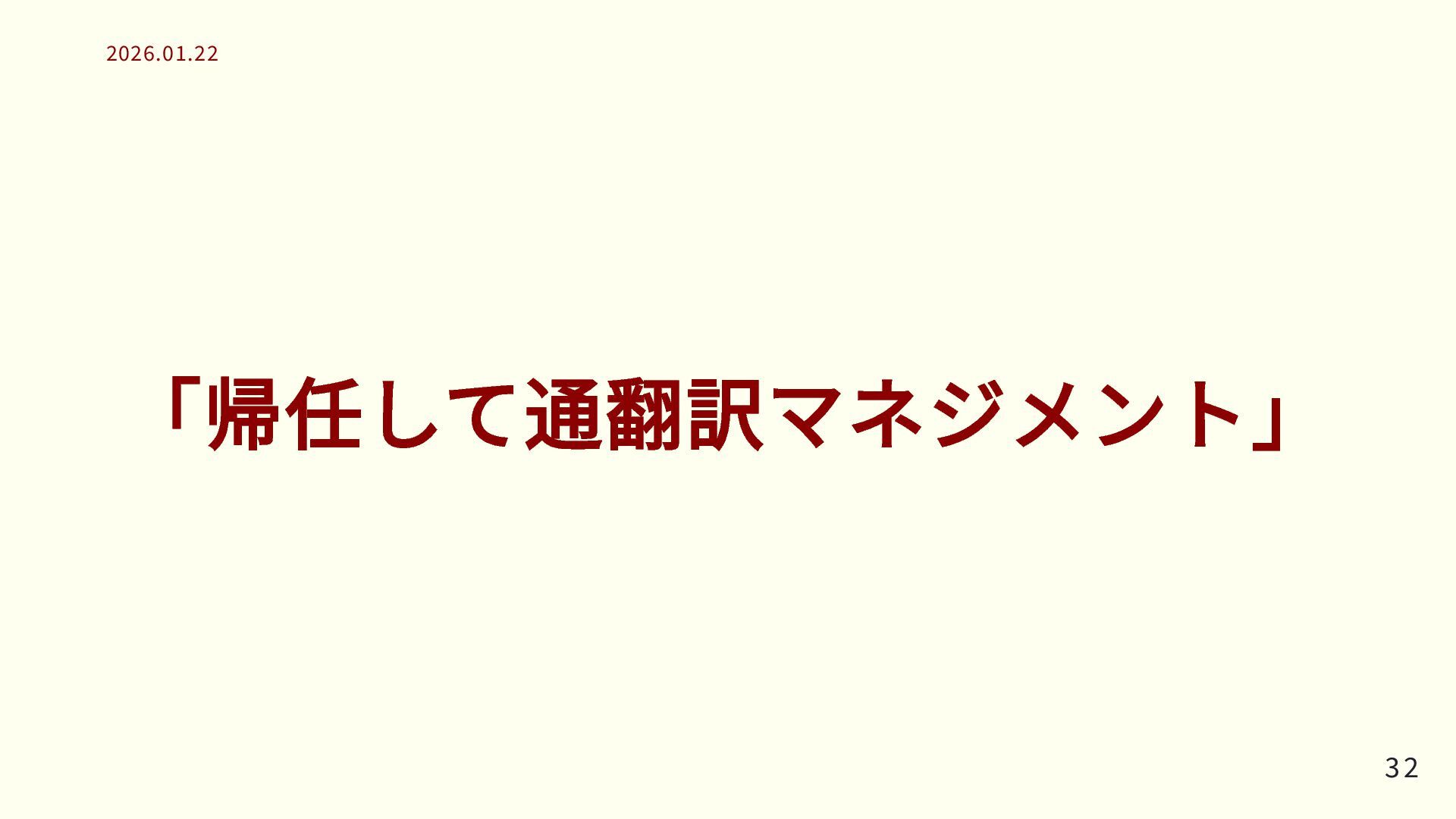 「帰任して通翻訳マネジメント」 32 32 2026.01.22 2026.01.22