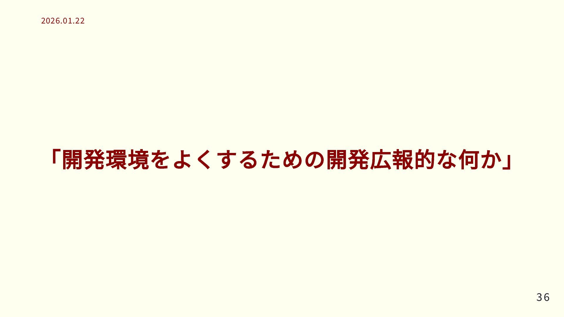 「開発環境をよくするための開発広報的な何か」 36 36 2026.01.22 2026.01.22