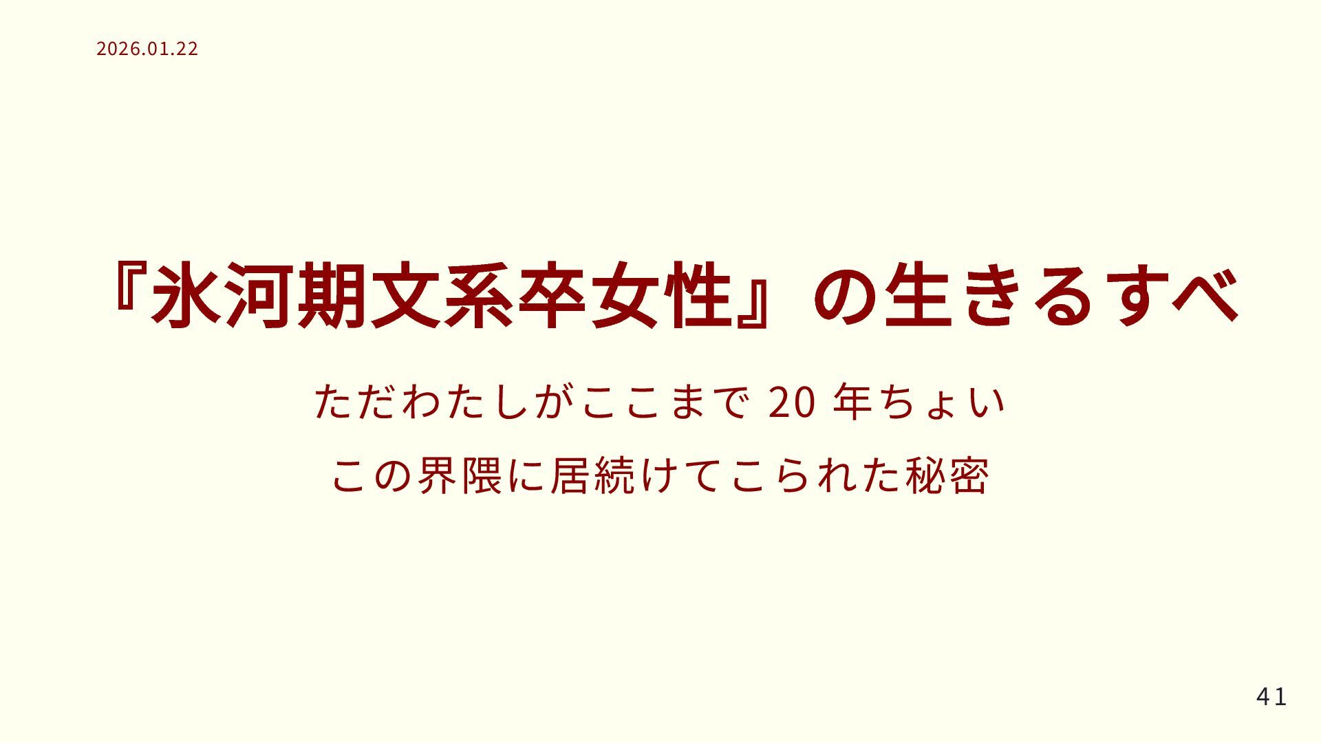 『氷河期文系卒女性』の生きるすべ ただわたしがここまで 20 年ちょい この界隈に居続けてこられた秘密 41 41 2026.01.22 2026.01.22
