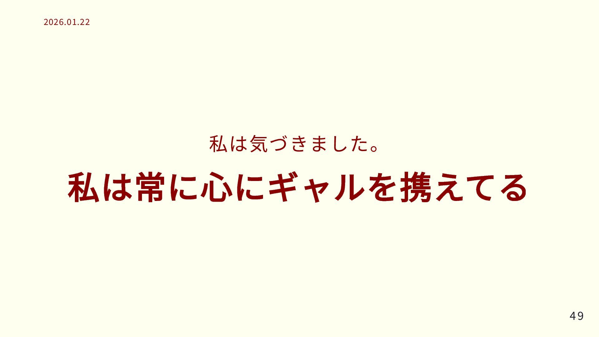 私は気づきました。 私は常に心にギャルを携えてる 49 49 2026.01.22 2026.01.22