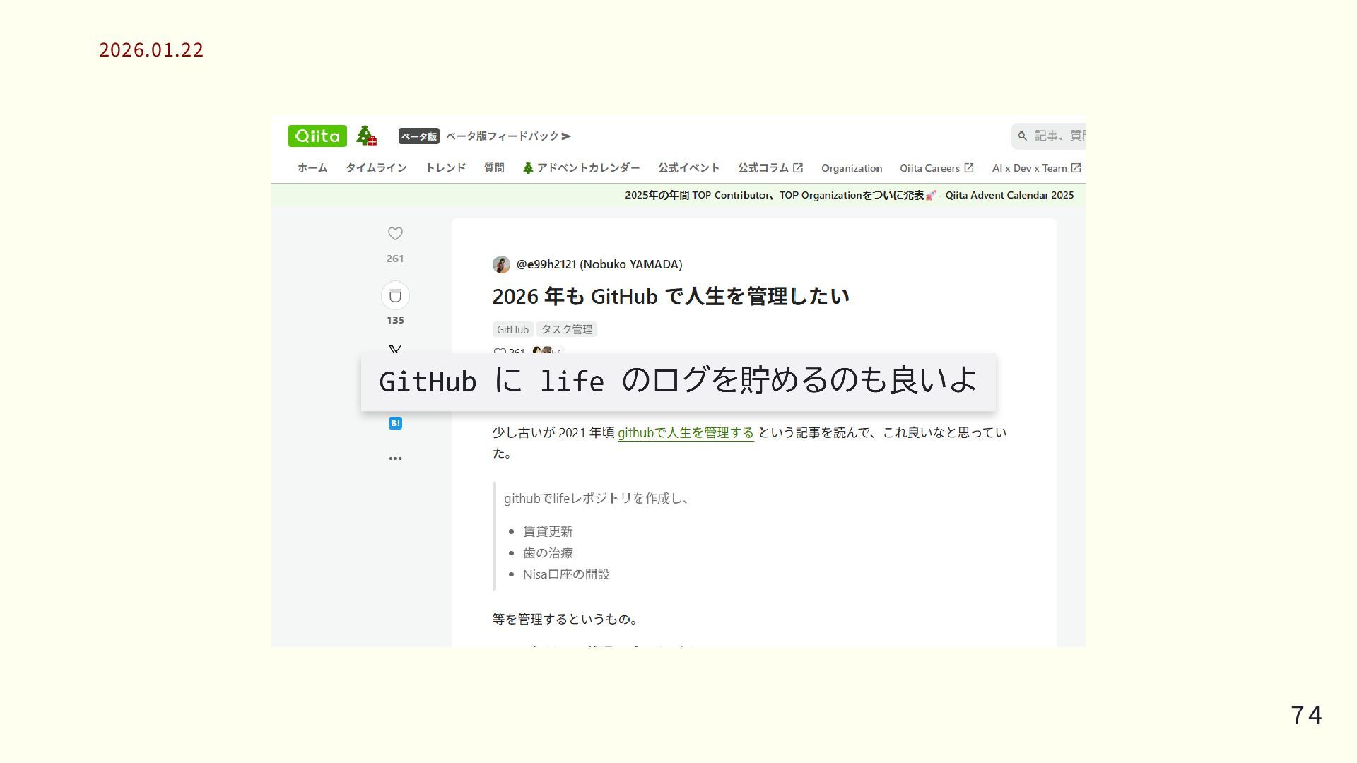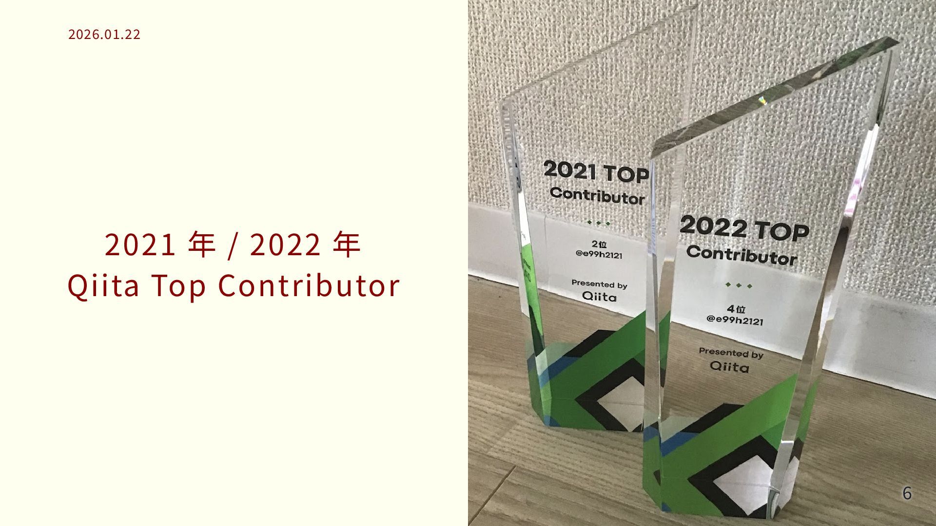 2021 年 / 2022 年 Qiita Top Contributor 2026.01.22 2026.01.22