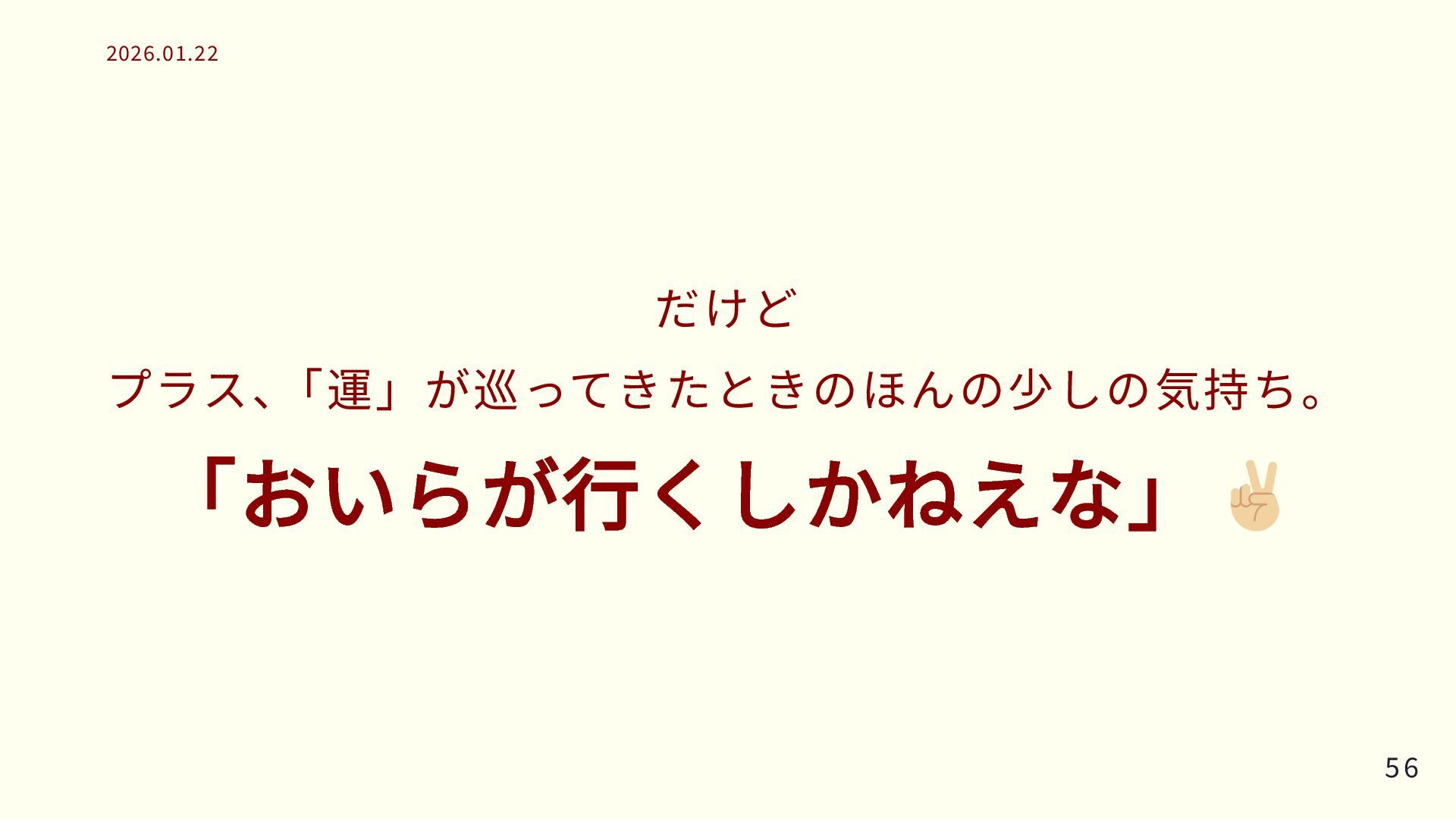 だけど プラス、 「運」が巡ってきたときのほんの少しの気持ち。 「おいらが行くしかねえな」 56 56 2026.01.22 2026.01.22