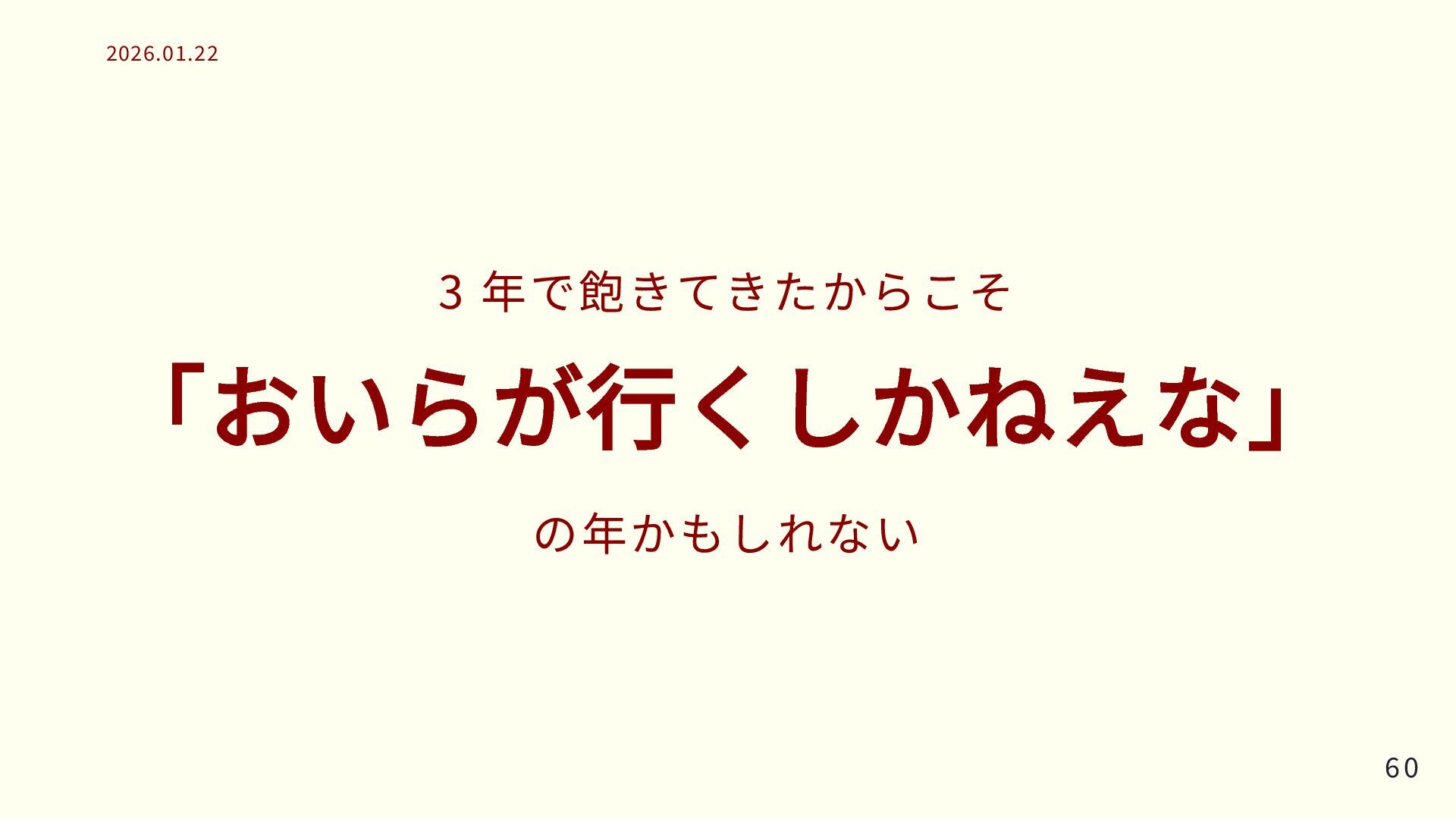 3 年で飽きてきたからこそ 「おいらが行くしかねえな」 の年かもしれない 60 60 2026.01.22 2026.01.22