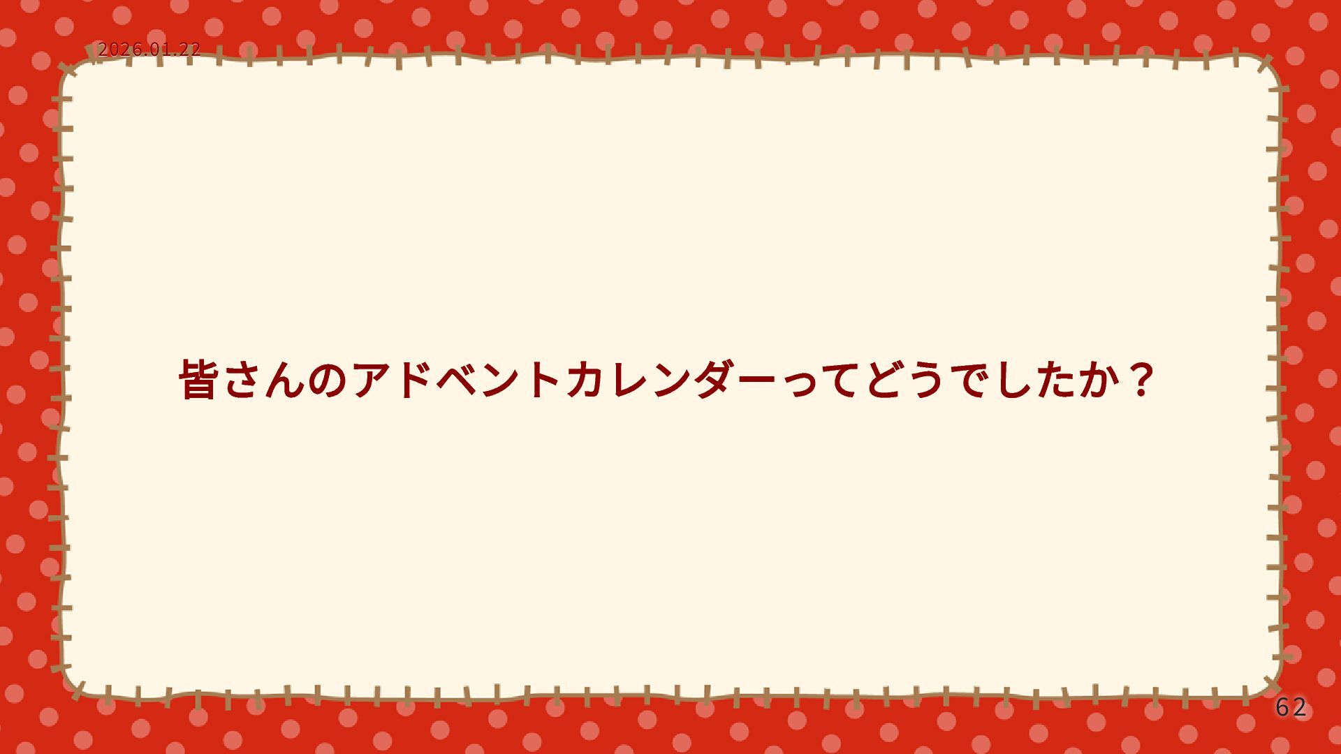 皆さんのアドベントカレンダーってどうでしたか? 2026.01.22 2026.01.22 62 62